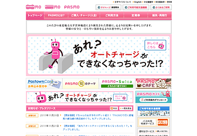 | DESCRIPTION | PASMO(パスモ)公式ホームページ。PASMO(パスモ)は、首都圏の鉄道・バスでご利用いただける便利なICカードです。PASMOはオートチャージもでき、ショッピングでもご利用いただけます。 |
